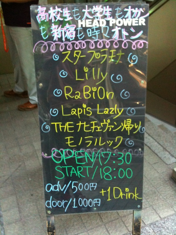 さてさて、今日はライブです。 場所は新宿HEAD POWER. 新大久保駅が1番近いです。 早稲田の人に誘ってもらったんで、この機会に人脈を広めたいです。 シャイだけど、、、頑張ります!! いって来ます。 そして、なんと ギターが、新型に感染し出れません(-_-#) けど、見に来てくれる人がいる限り、全力で出演してきます!! そして、学校は公欠だーヽ(;▽;)ノ |